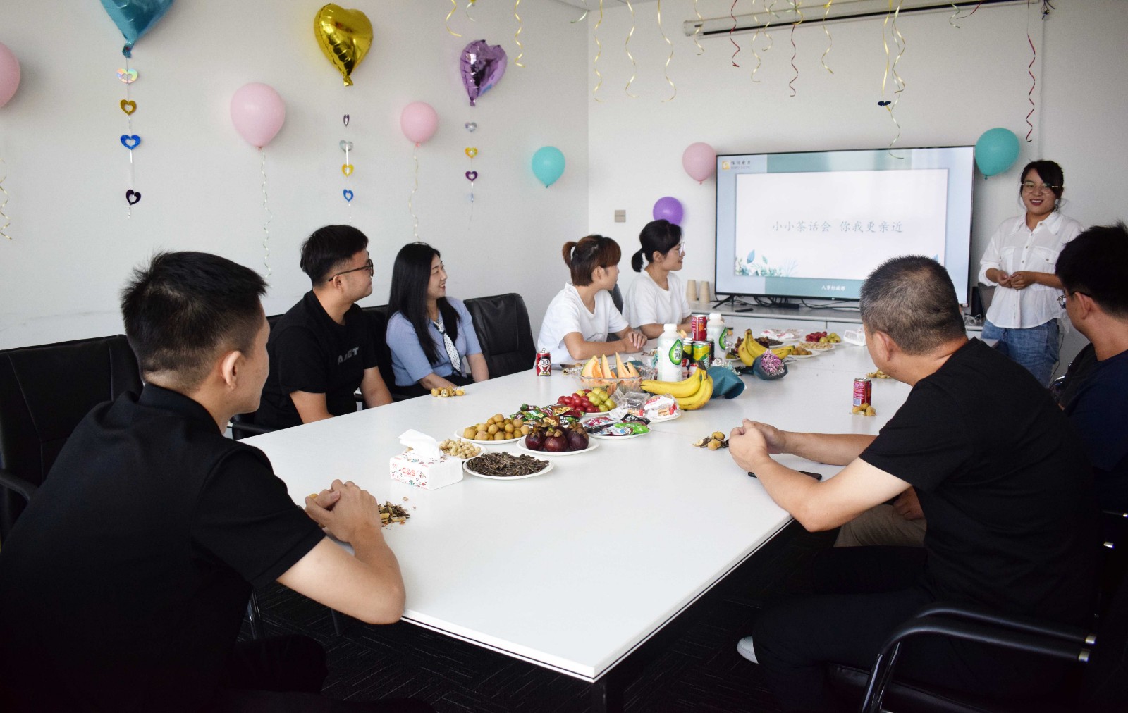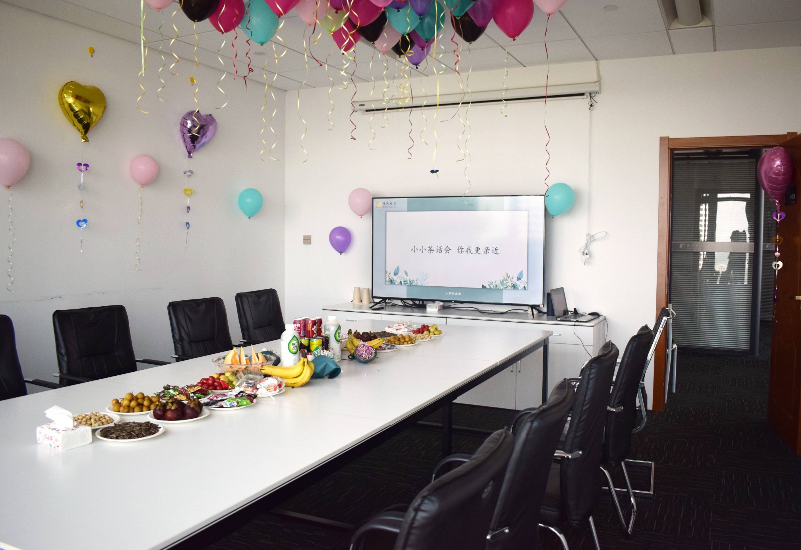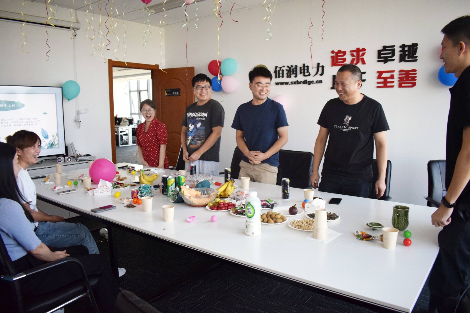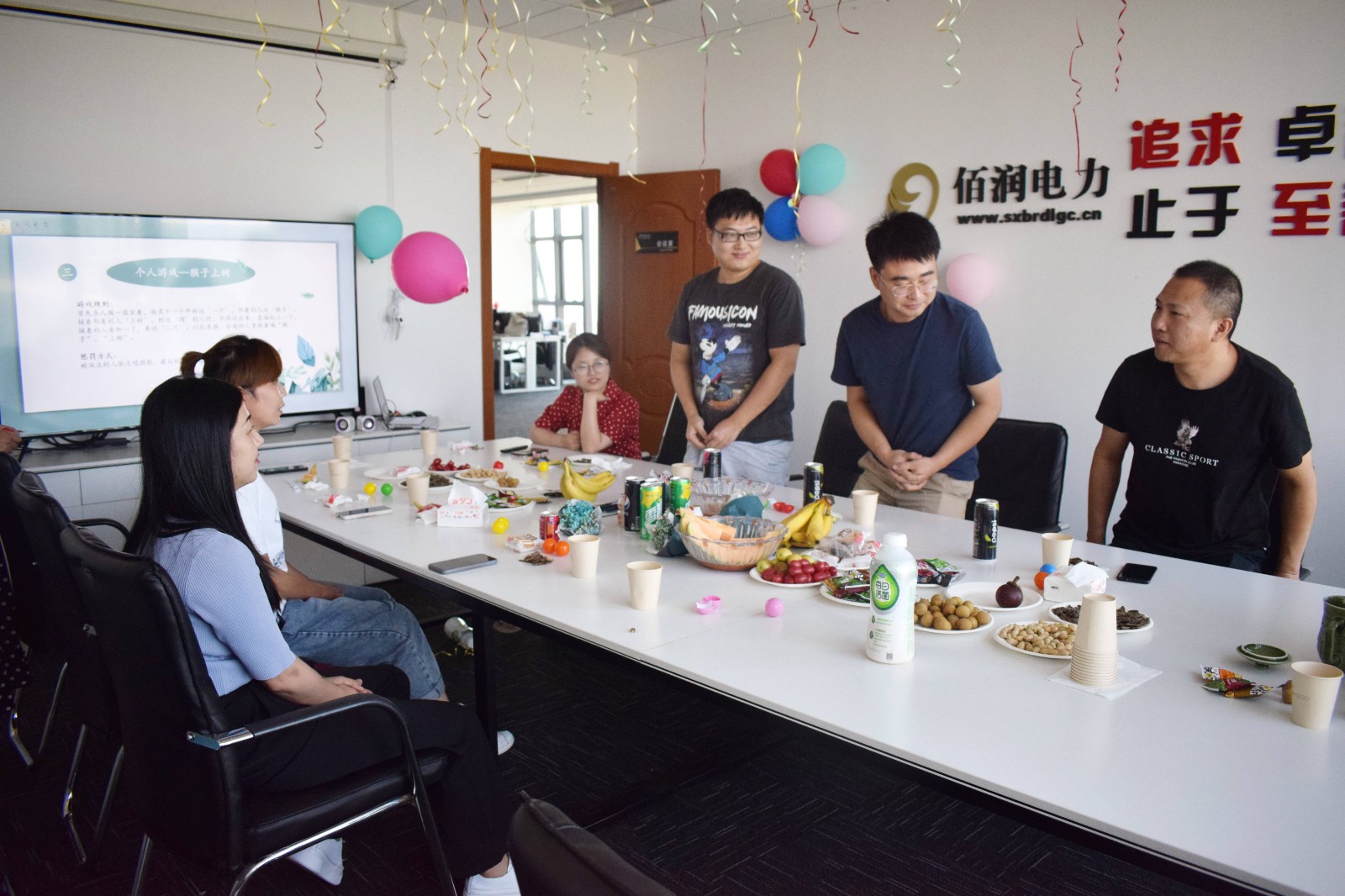 為了保證本次活動圓滿舉行,27日上午,人事行政部和電力事業(yè)部幾位同事提早布置會議室,準(zhǔn)備好花生瓜子、水果、飲料、零食及團(tuán)建活動獎品等。